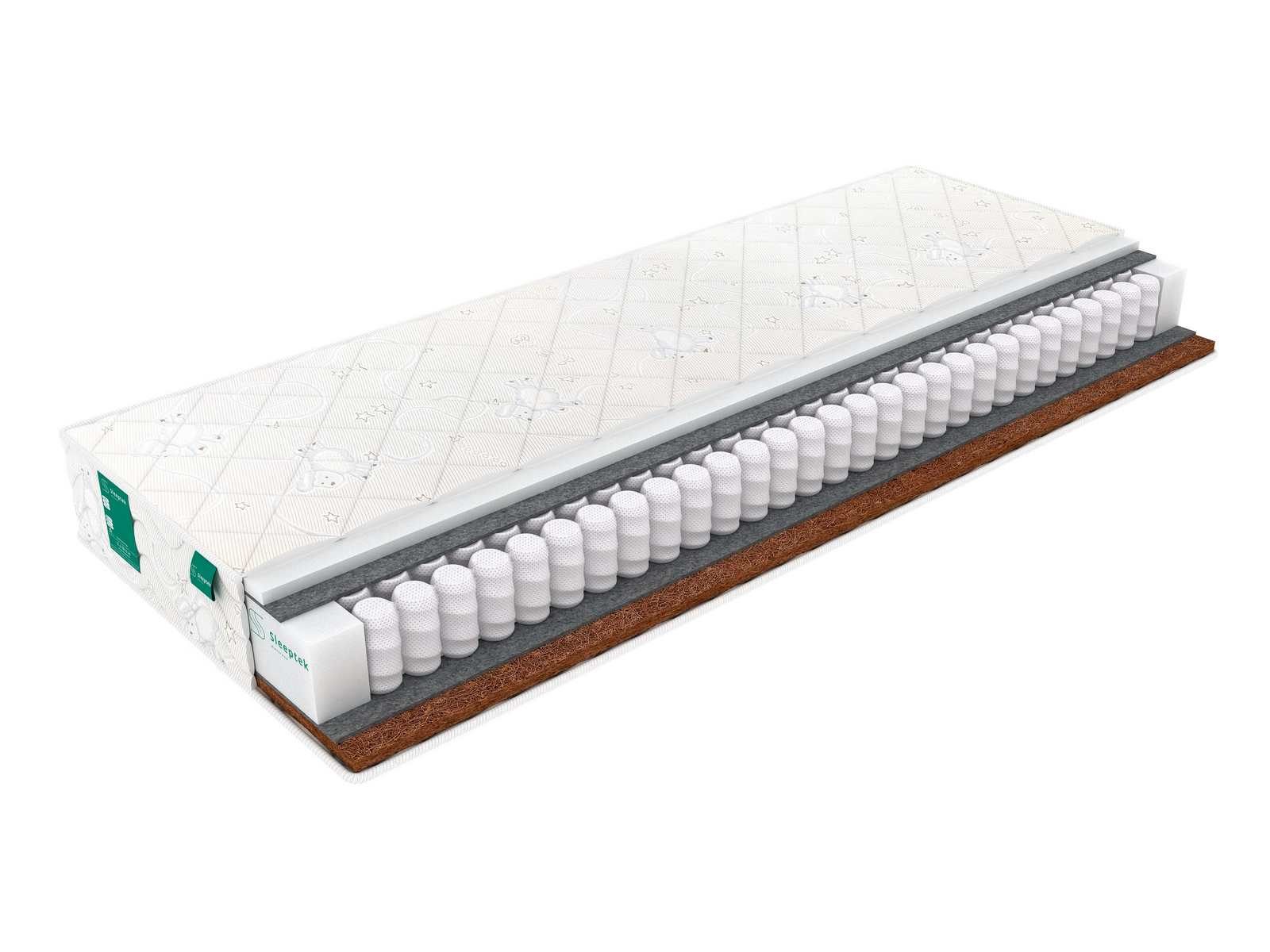 Матрас поставляется в стильном чехле, выполненном из трикотажа с детским рисунком. Поверхность приятна на ощупь и обеспечивает дополнительный комфорт во время сна. Чехол на молнии для удобства эксплуатации и ухода.