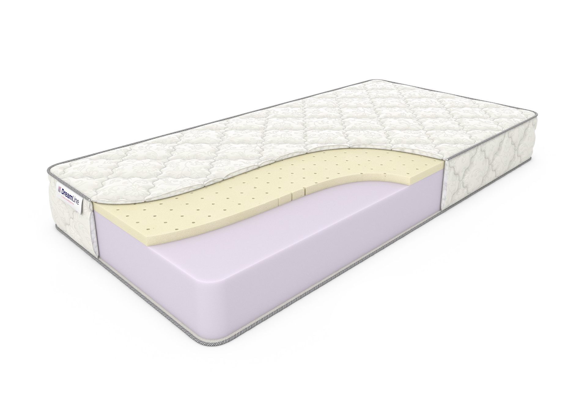 Беспружинный матрас Dream Roll Latex, высота которого составляет 18 см, состоит из двух наполнителей: в основе его толстый блок искусственного латекса, а с одной из сторон сверху уложен слой натурального. Свойства этих материалов во многом схожи, однако искусственный латекс обладает чуть большей жесткостью, так что с одной стороны матрас средней жесткости, а с другой помягче. Оба слоя хорошо принимают форму человеческого тела, так что спать на таком матрасе будет очень комфортно с любой стороны. Модель Dream Roll Latex подходит людям весом до 120 кг; поставляется он в рулоне, что очень удобно при перевозке. Чехол матраса выполнен из хлопкового жаккарда, простеган и наполнен объемным антиаллергенным холконом 200 гр./м2. По желанию покупателя в него можно бесплатно вшить смотровую молнию.