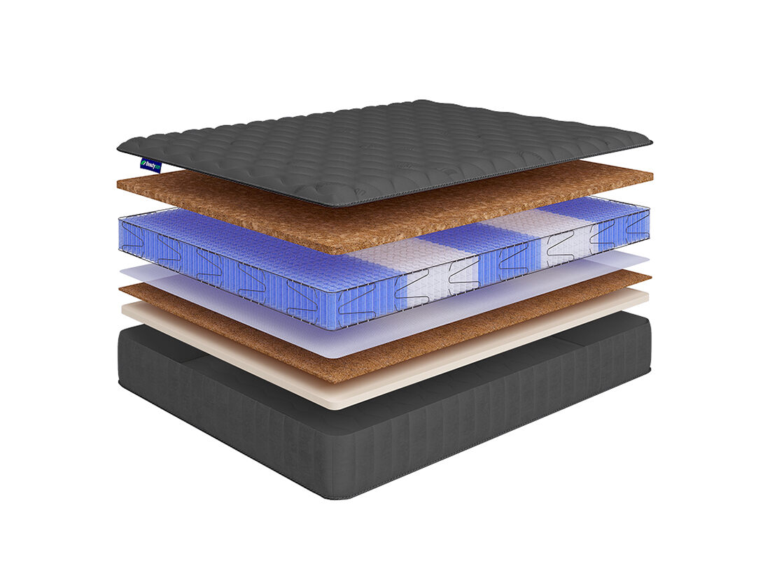 Матрас с разной жёсткостью сторон Hit VarioHard Lux S1200 выполнен на основе пружинного блока "Мультипакет" (1200 пружин на спальное место), искусственного латекса и эко-кокоса (смесь натуральных кокосовых волокон со струттофайбером). Мультизональный пружинный блок обеспечивает оптимальную анатомическую поддержку спящему человеку, 5 различных зон жёсткости пружин соответствуют частям тела человека, обеспечивая тем самым равномерное распределение веса тела и нахождение позвоночника в естественном положении. Искусственный латекс - гипоалергенный аналог натурального наполнителя. Данный материал имеет пористую структуру, сечение ячеек которой идентично сечению ячеек натуральной латексной пены, благодаря чему достигается практически полное соответствие характеристик. При этом немаловажным преимуществом искусственного латекса является его абсолютная гипоаллергенность, т.е. применение данного материала безопасно даже для людей, страдающих от аллергии.