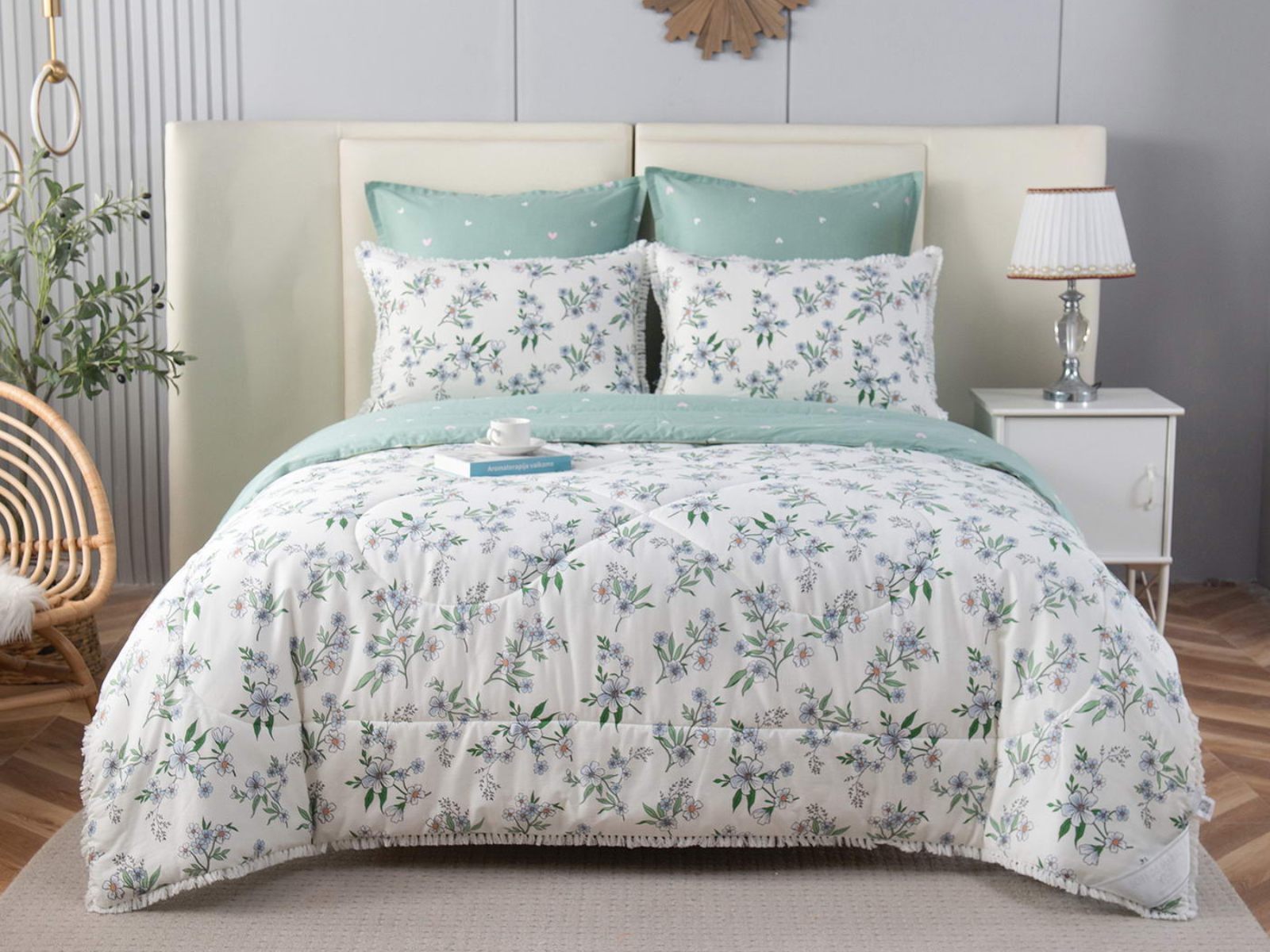В комплекты комфортеров с одеялом Бернадетт входят наволочки, простыня и легкое всесезонное одеяло. Оцените это современное и очень удобное решение, которое идеально подходит тем, кто не любит возиться с пододеяльниками.