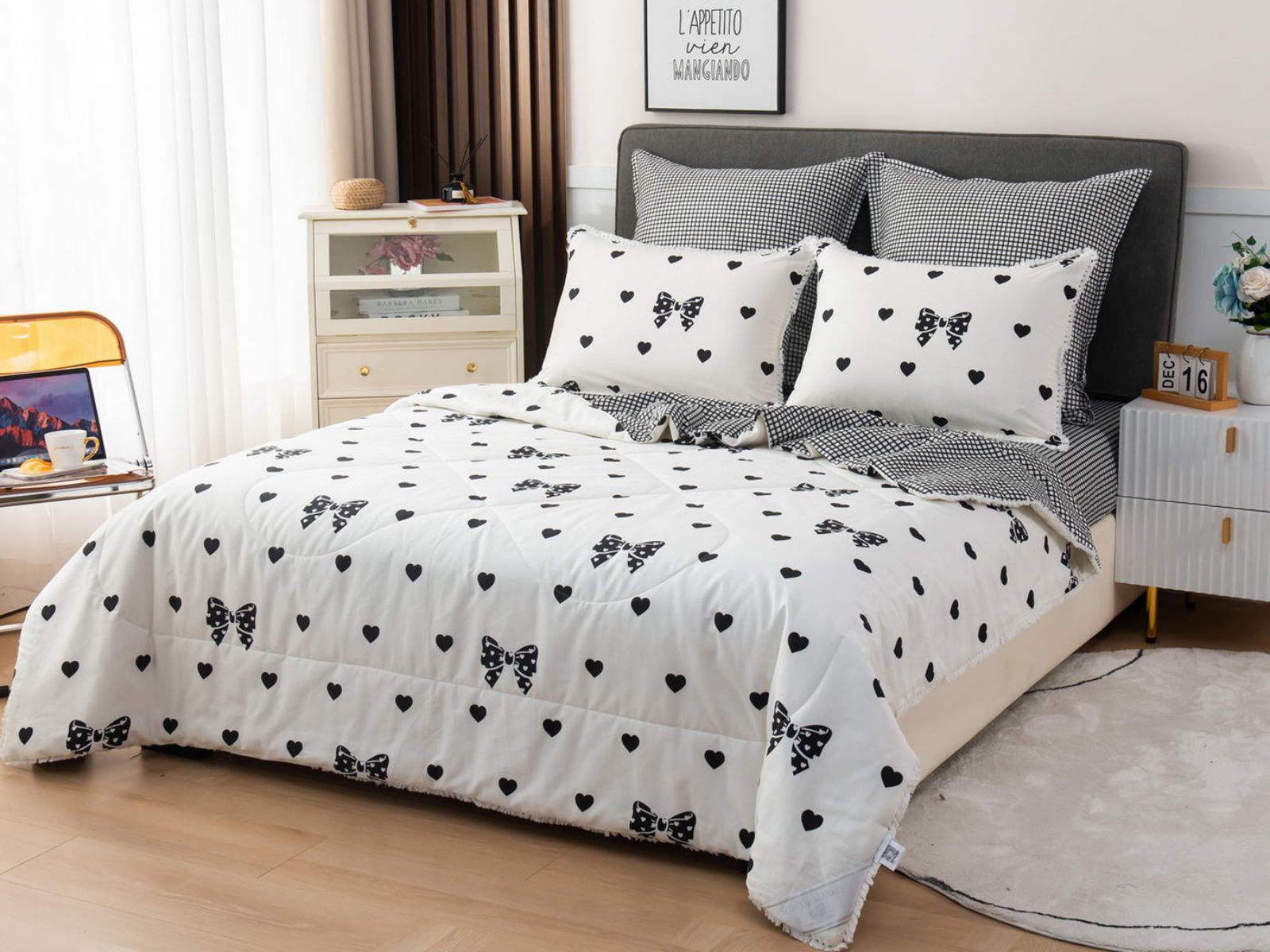 В комплекты комфортеров с одеялом Бернадетт входят наволочки, простыня и легкое всесезонное одеяло. Оцените это современное и очень удобное решение, которое идеально подходит тем, кто не любит возиться с пододеяльниками.