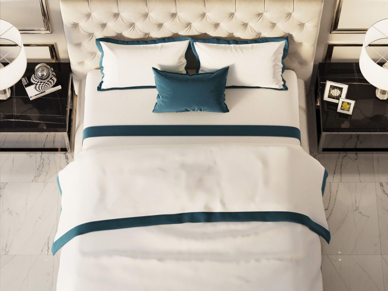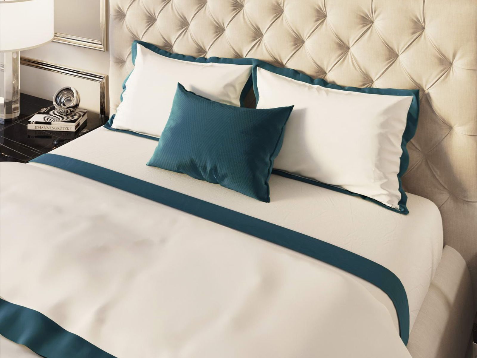 Особенность: Пошив пододеяльника - пуговицы, пошив наволочек - клапан. Изделия декорированы цветными ушками 5 см.