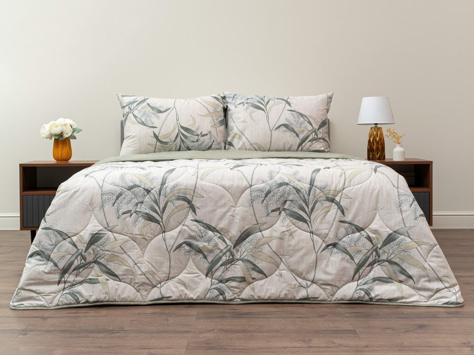 Комплект Мелвин легко стирается в обычной машине в бережном режиме и также легко гладится.