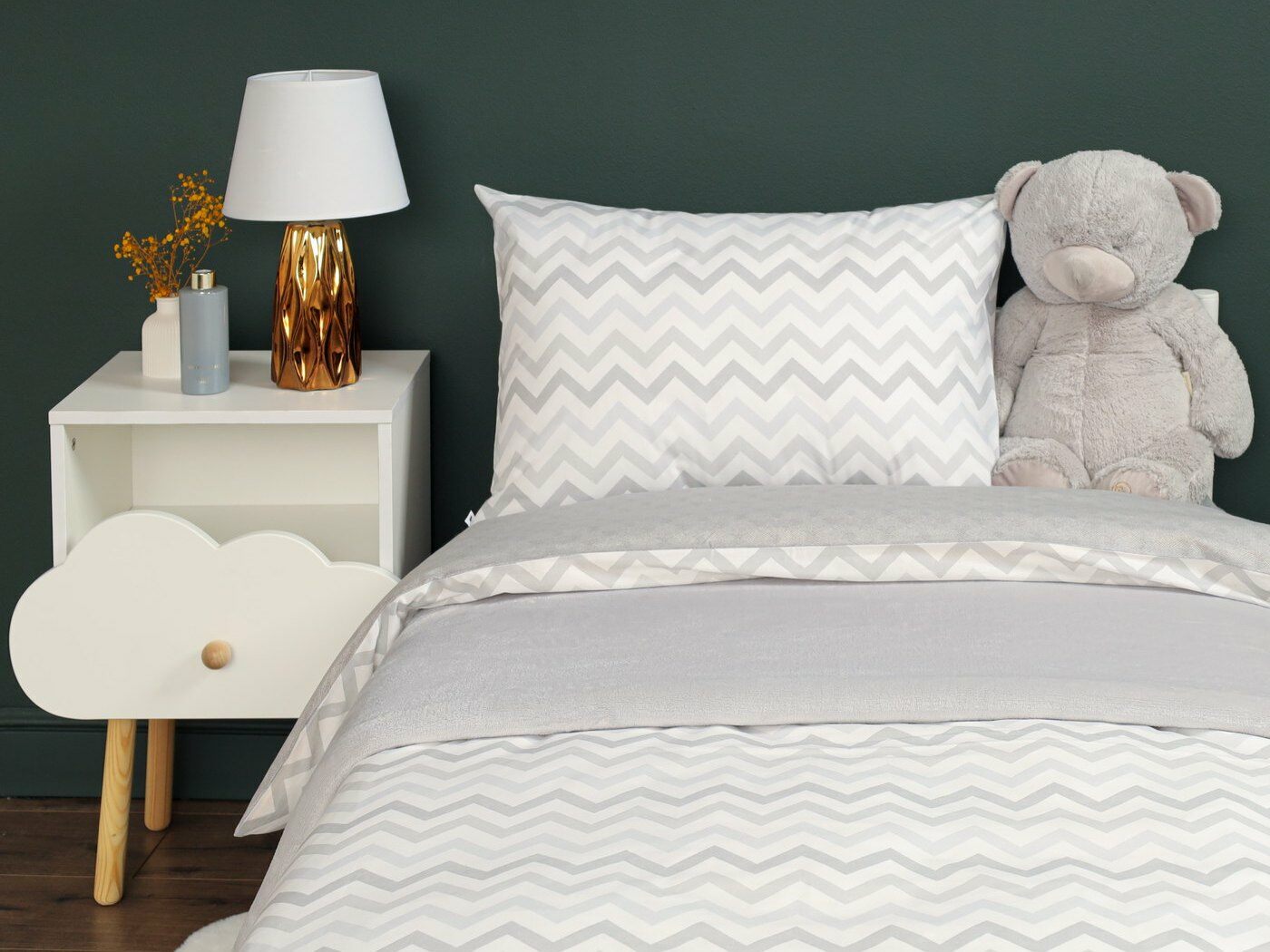 Пододеяльник –двусторонний: верх из ткани А (принтованная ткань), обратка из ткани В (однотонная рогожка), с потайной молнией.