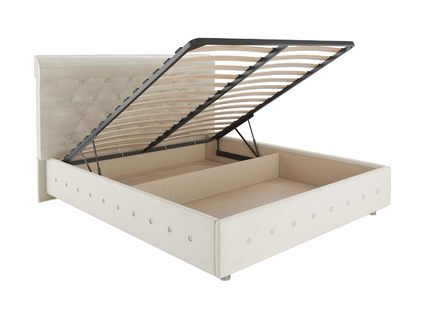 В комплект входит ортопедическое металлическое разборное основание с подъемным механизмом. При желании основание всегда можно поднять и получить доступ к вместительному бельевому ящику. Это дополнительная система для хранения постельных принадлежностей. Она позволит разгрузить шкаф и спрятать сезонные вещи.
