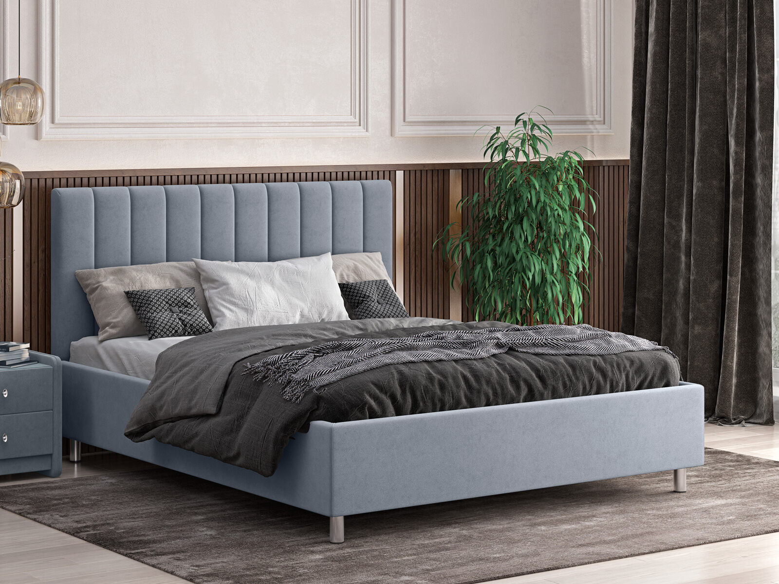Кровать Лероса отличается универсальным дизайном, позволяющим легко сочетаться со множеством стилевых направлений. Ее изголовье оригинально оформлено вертикальными панелями, которые добавляют выразительности и придают дополнительный объем модели.