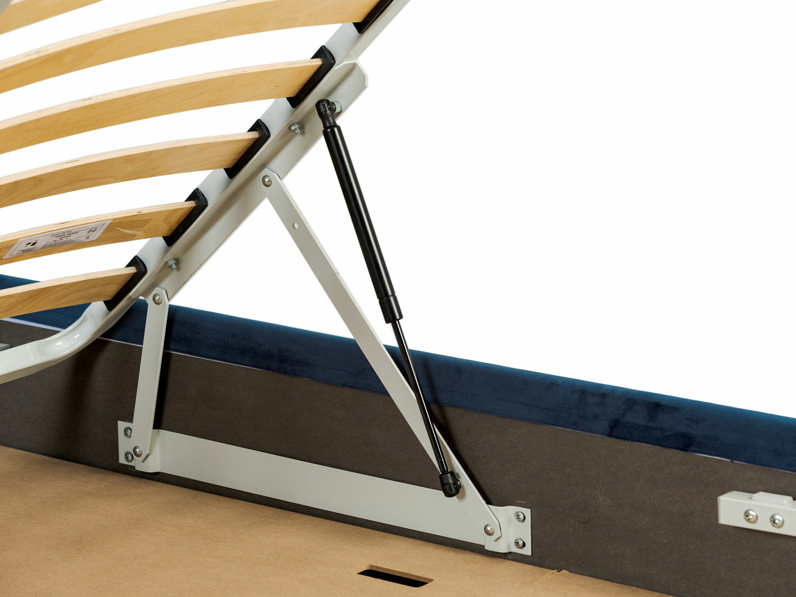 Кровать оснащена основанием с ламелями и подъемным механизмом. Рекомендуемая высота матраса от 13 см, вес матраса до 50 кг.