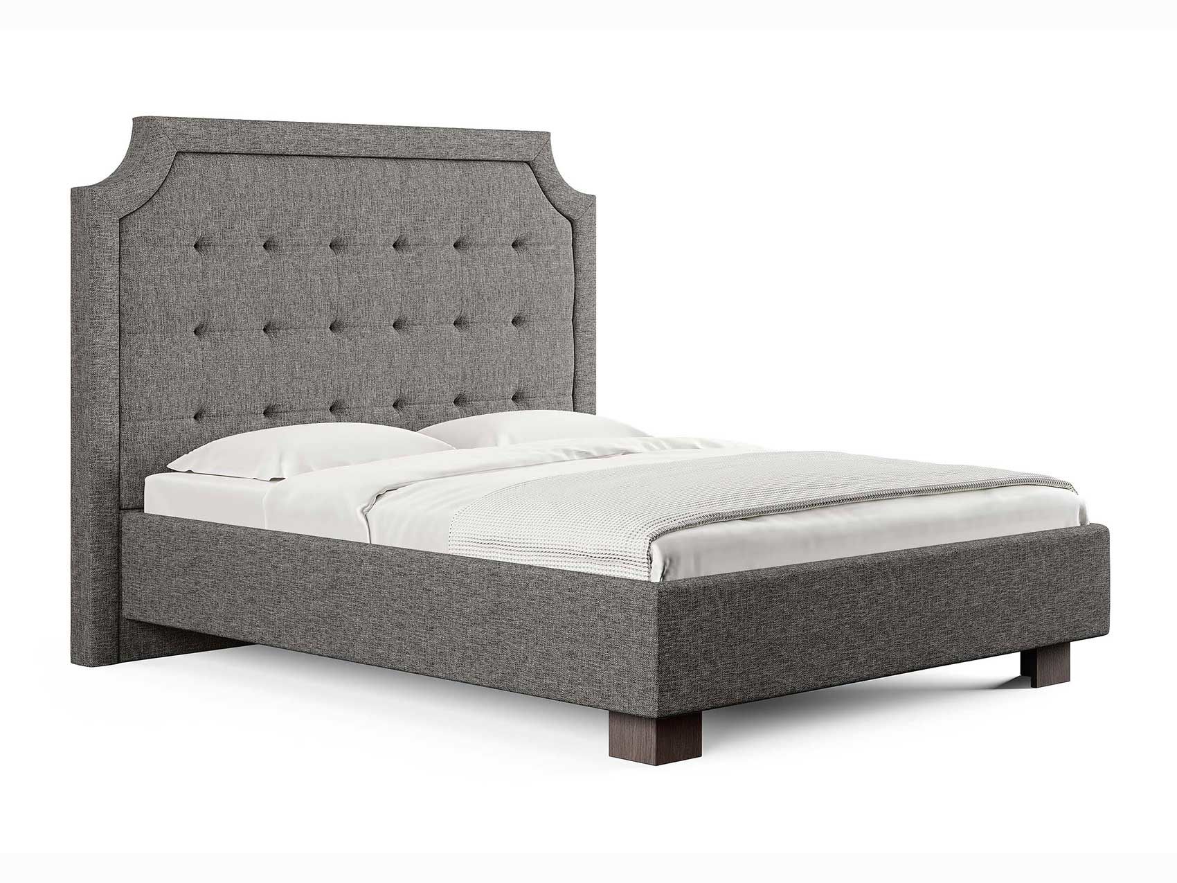Кровать прекрасно впишется в интерьер от классики до современного стиля и cтанет отличным решением для просторной светлой спальни. Высокая спинка с мягкими утяжками и массивной рамкой выглядит эффектно. Задняя часть спинки кровати выполнена в основной ткани, благодаря этому ее можно установить в центре комнаты. Увеличенная прочность кровати достигается за счет металлического каркаса по периметру. Массивные ножки, выполнены из бука цвета венге. Расстояние от пола до царг способствует легкой уборке под кроватью, в том числе роботом – пылесосом.