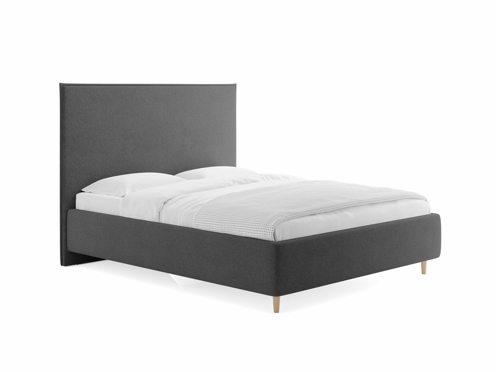 Кровать Eveline для современных интерьеров в скандинавском стиле. Выглядит эффектно благодаря мягкому высокому изголовью с декоративным кантом по периметру и опорам из натурального дерева. Модель будет смотреться выигрышно и актуально в интерьере, делая спальню уютнее, настраивая на отдых.