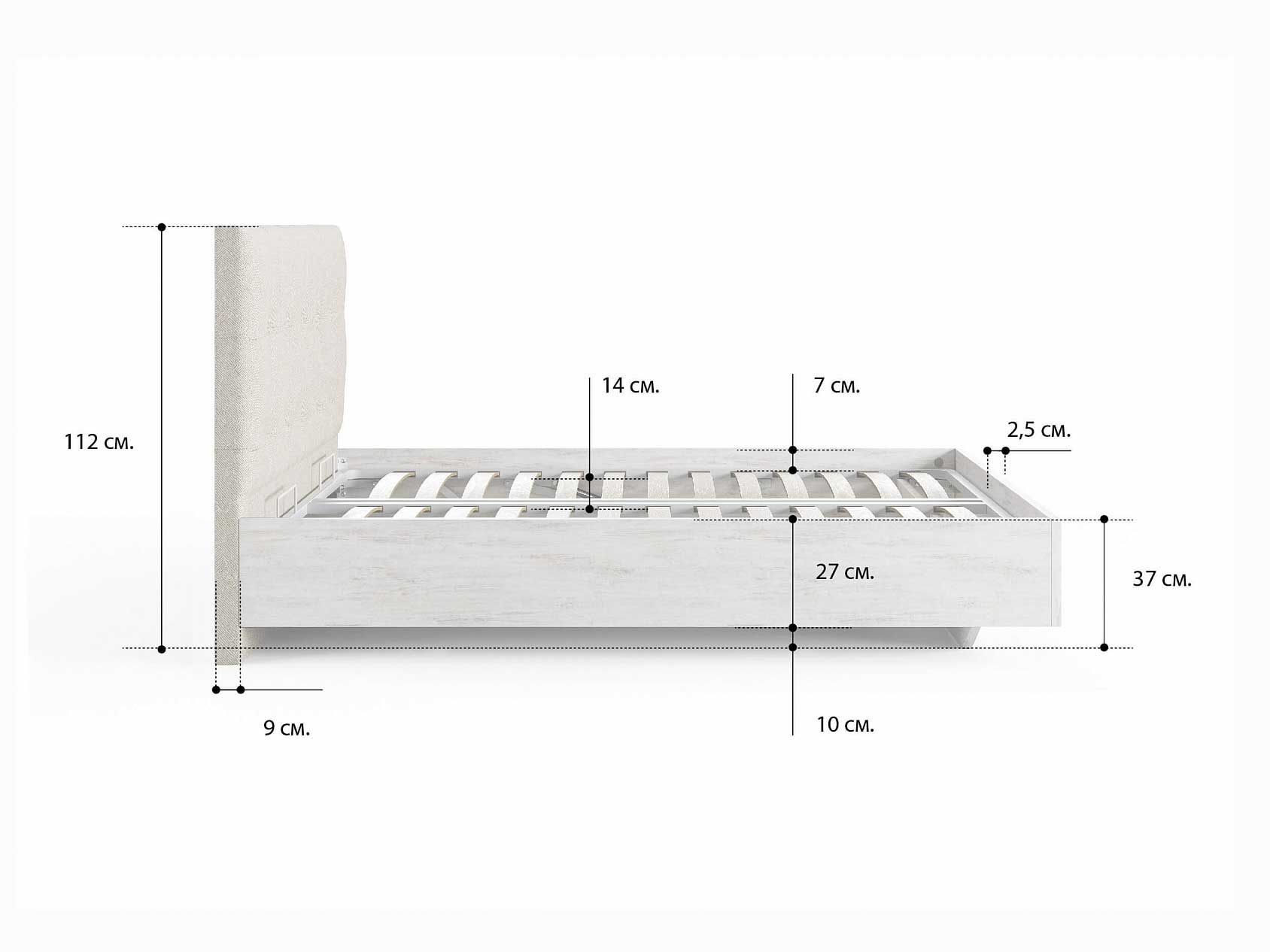 Кровать комплектуется металлическим основанием и подъемным механизмом со вместительным бельевым ящиком. Дно бельевого ящика легко сдвигается для обеспечения уборки под кроватью.
