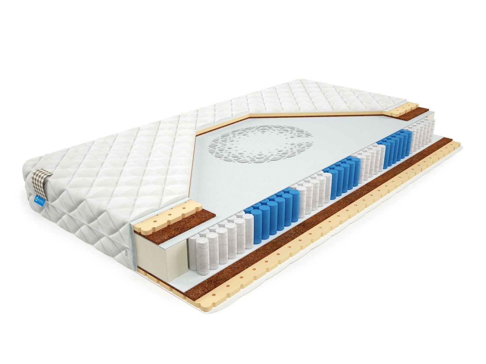 Матрас BioCrystal Record L – классический матрас с кокосом и латексом. Матрас c ортопедическим эффектом на основе семи-зонного пружинного долговечного блока независимых пружин SIlverSpringPocket 7 zone . Данный блок насчитывает 1000 металлических пружин на одно спальное место, это оптимальное количество пружин для бюджетного матраса. 7 зональный пружинный блок SSP 1000 значительно прочнее обычного блока независимых пружин, и имеет большее количество витков, что, в свою очередь, лучше сказывается на упругости матраса и качестве сна. Матрас насчитывает семь зон жесткости и правильно повторяет изгибы позвоночника во время сна или отдыха. С каждой стороны матраса расположены по 2 сантиметра натурального латекса, что делает матрас мягким и упругим одновременно и по 1 сантиметру латексированного кокоса. Это оптимальный выбор для тех, кому важен комфортный сон и долговечность матраса.