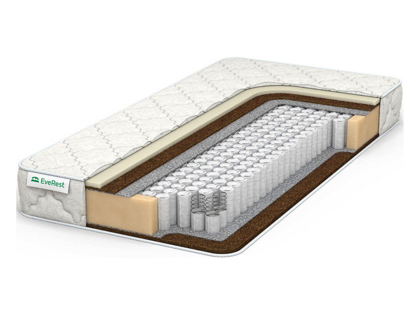 Разносторонний матрас EveRest Рестфом бикокос ТФК подойдёт для тех людей, кто ищет разной мягкости. Одна сторона изделия получила высокую жёсткость, а другая обладает средней. Таким образом, переворачивая спальную принадлежность, можно обрести различные ощущения от отдыха.