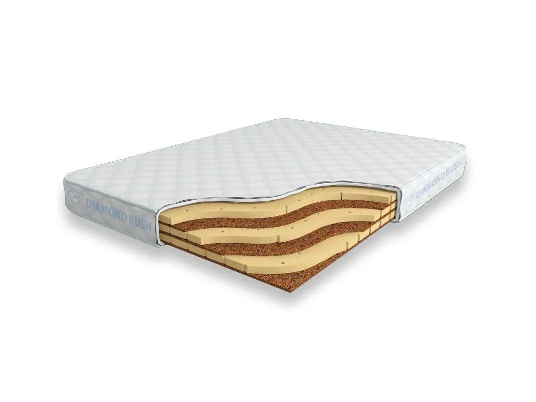 Матрас Diamond Rush Mix Cocos 12 DR является беспружинным, т.е. не имеет в своей основе пружинного блока. В его состав входят чередования слоев латексированной кокосовой койры (1см) и натурального латекса с перфорацией (3см). Эта модель имеет разные по жесткости стороны.