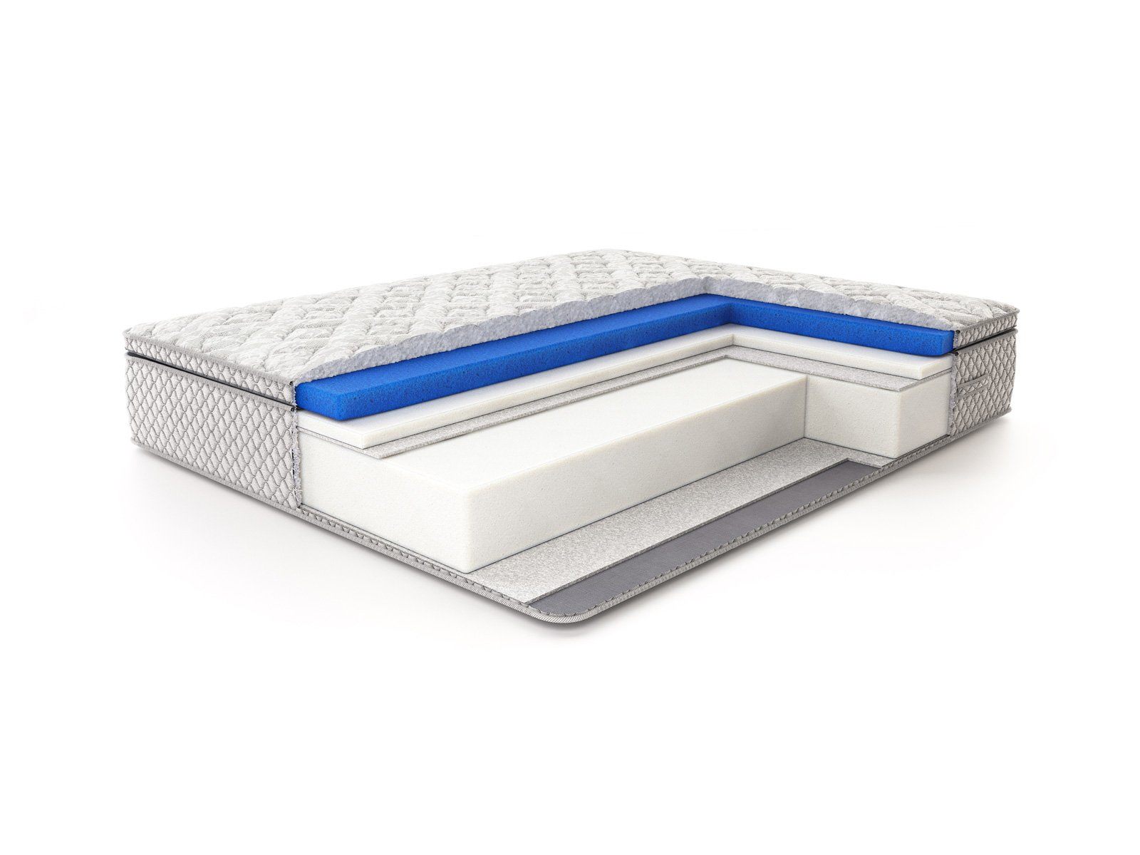 Роскошный рельефный чехол из жаккарда, простёганный по типу «слоёный пирог»: объёмное гипоаллергенное волокно холлкон 300 гр., ППУ 1 см, спанбонд — максимальный первоначальный комфорт. Чехол матраса несъемный.