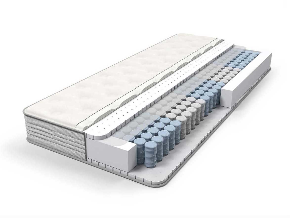 В основе Матраса из латекса Comfort блок независимых пружин Pocket Zone, имеющий 5 зон различной степени упругости плотностью 500 пружин на спальное место. Благодаря использованию проволоки различного диаметра каждая из зон получает опору соответствующей для нее жесткости, обеспечивая правильное распределение нагрузки. В качестве наполнителя мягкого слоя используется натуральный латекс. Матрас из латекса Comfort один из самых мягких в нашей коллекции.