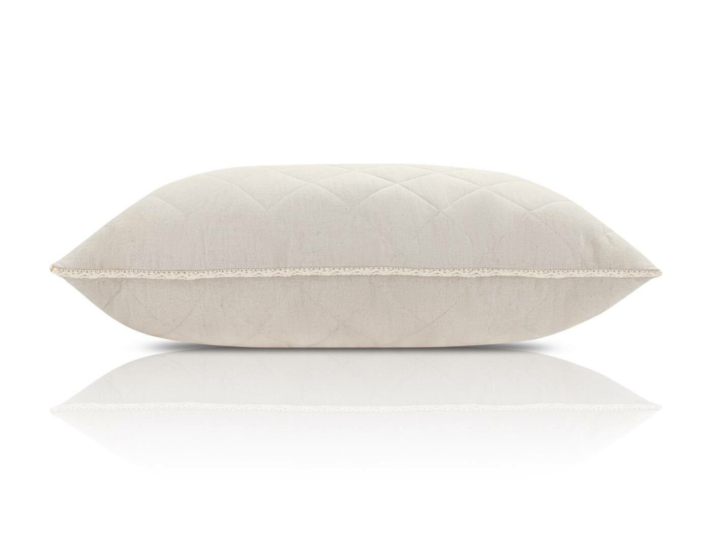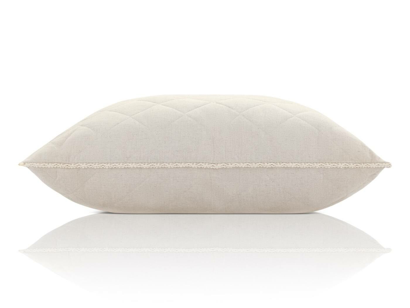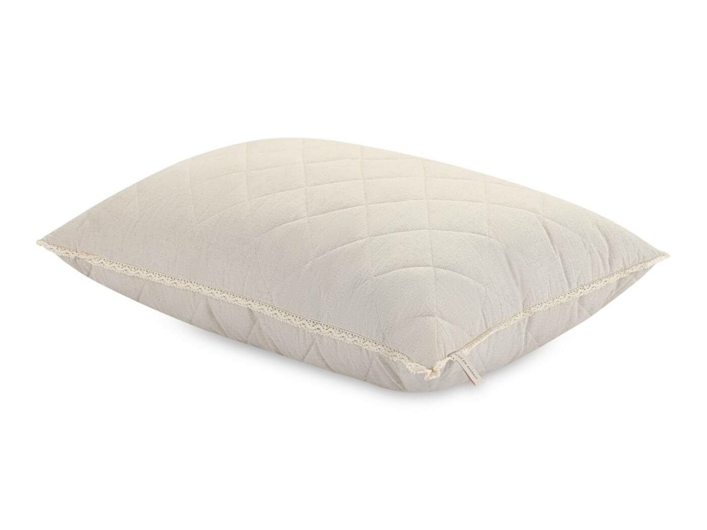 Универсальная, классическая подушка с анатомическими свойствами, обладает хорошей вентиляцией, не удерживает запах и влагу, гипоаллергенна. Чехол съемный, на молнии. Все изделия обрамляет изящное кружево из 100% хлопка, что придает им дополнительный шарм и красоту.