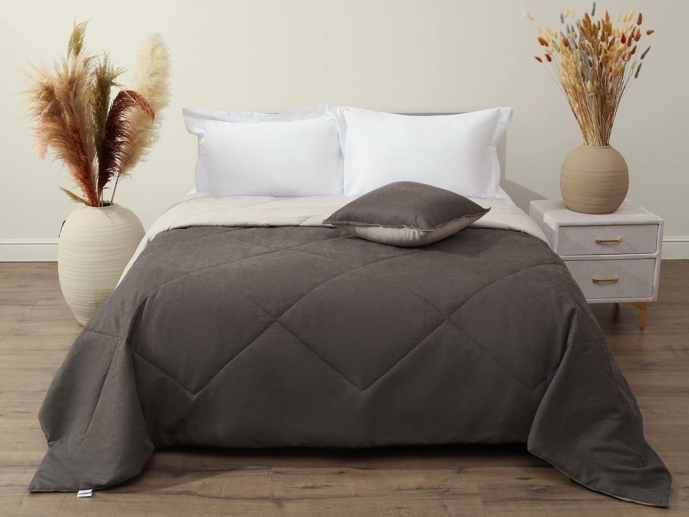 Превратите свой дом в пространство роскоши и комфорта Откройте дверь в мир премиального уюта Представьте себе момент, когда вы касаетесь ткани, которая словно создана для ваших рук. Коллекция «Нолан» – это именно та роскошь, которую вы заслуживаете. Каждое изделие – это произведение искусства, где безупречное качество встречается с доступной ценой. Магия бархатного прикосновения. Бархатистый канвас – это не просто ткань, это ваша новая страсть. Его изысканная текстура создает неповторимую атмосферу уюта, а премиальное качество 100% вискозы делает каждое прикосновение особенным. Инновации, которые меняют правила игры. Двусторонняя конструкция – это революция в мире домашнего текстиля. Теперь вы можете менять облик вашей спальни или гостиной, не тратя лишних средств. Два дизайна в одном изделии – это свобода выбора каждый день! Универсальная стежка «крупный ромб» станет идеальным компаньоном для любого интерьера. Классический дизайн, который никогда не выйдет из моды, подчеркнет ваш безупречный вкус