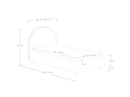 Подростковая кровать с закругленным изголовьем — это идеальное решение для создания уютного и стильного пространства в комнате. Элегантные линии изголовья не только придают изделию изысканный вид, но и добавят мягкость в интерьер, создавая уютную обстановку. По умолчанию задняя спинка кровати обивается тканью, что позволит расположить кровать не только к стене. Основание кровати на высоких деревянных ножках. Благодаря увеличенной высоте позволяют осуществлять легкую уборку под кроватью, даже с помощью робота-пылесоса. При необходимости кровать может быть укомплектована трансформируемым основанием Aquarius.